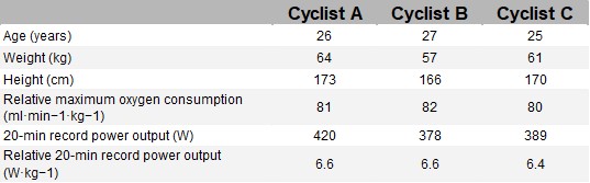Table 1. Anthropometric and physiological characteristics of the cyclists. Adapted from Gallo et al. (2022).3 (CC BY 4.0).